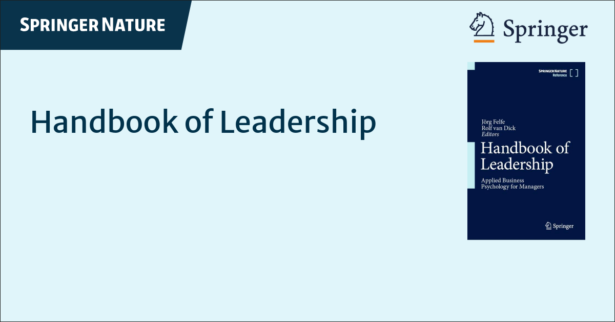 Vor wenigen Tagen ist im Verlag Springer Nature die englischsprachige Version des „Handbuchs Mitarbeiterführung“ erschienen. Die Herausgeber Prof. Jörg Felfe und Prof. Rolf van Dick haben 50 Artikel von anerkannten Experten zusammengetragen, um Führungskräfte in der täglichen Arbeit zu unterstützen. Die Beiträge sind wissenschaftlich fundiert, bieten zahlreiche Checklisten und Leitfäden und decken eine Vielzahl relevanter Themenfelder ab. Von neuesten Erkenntnissen zu modernen Führungstheorien (z. B. ethische oder authentische Führung), gesundheitsfördernder Führung oder dem Management von (alters-)diversen Gruppen.